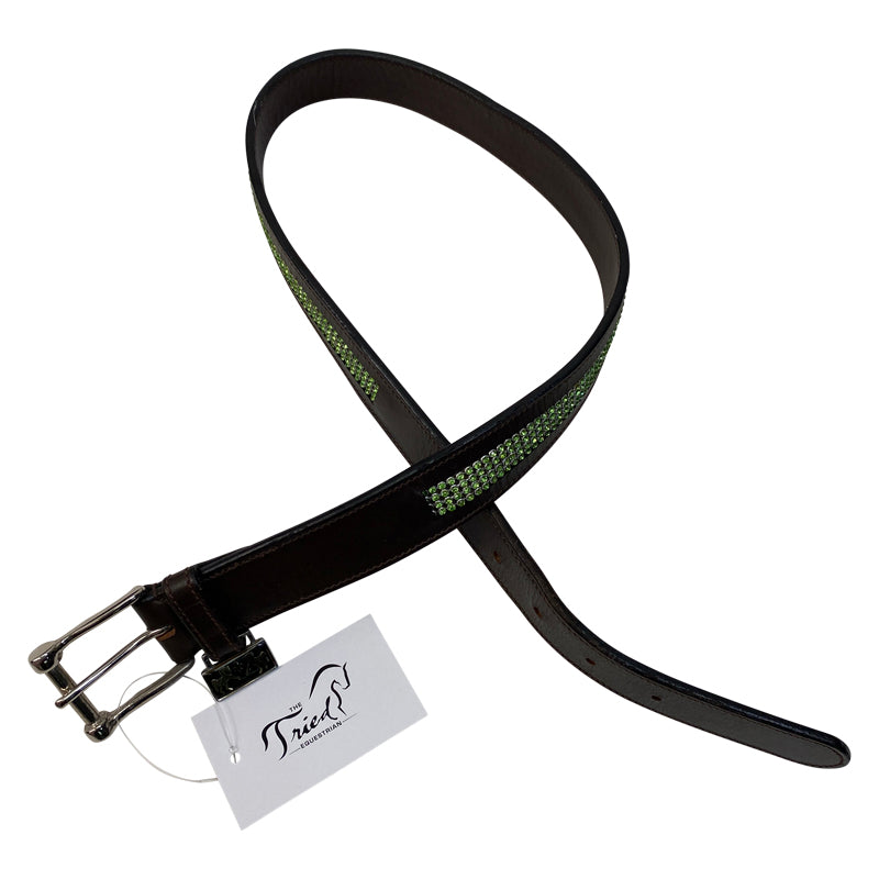Equine Couture Bling Leather Belt in Brown/Green - Children's Medium
