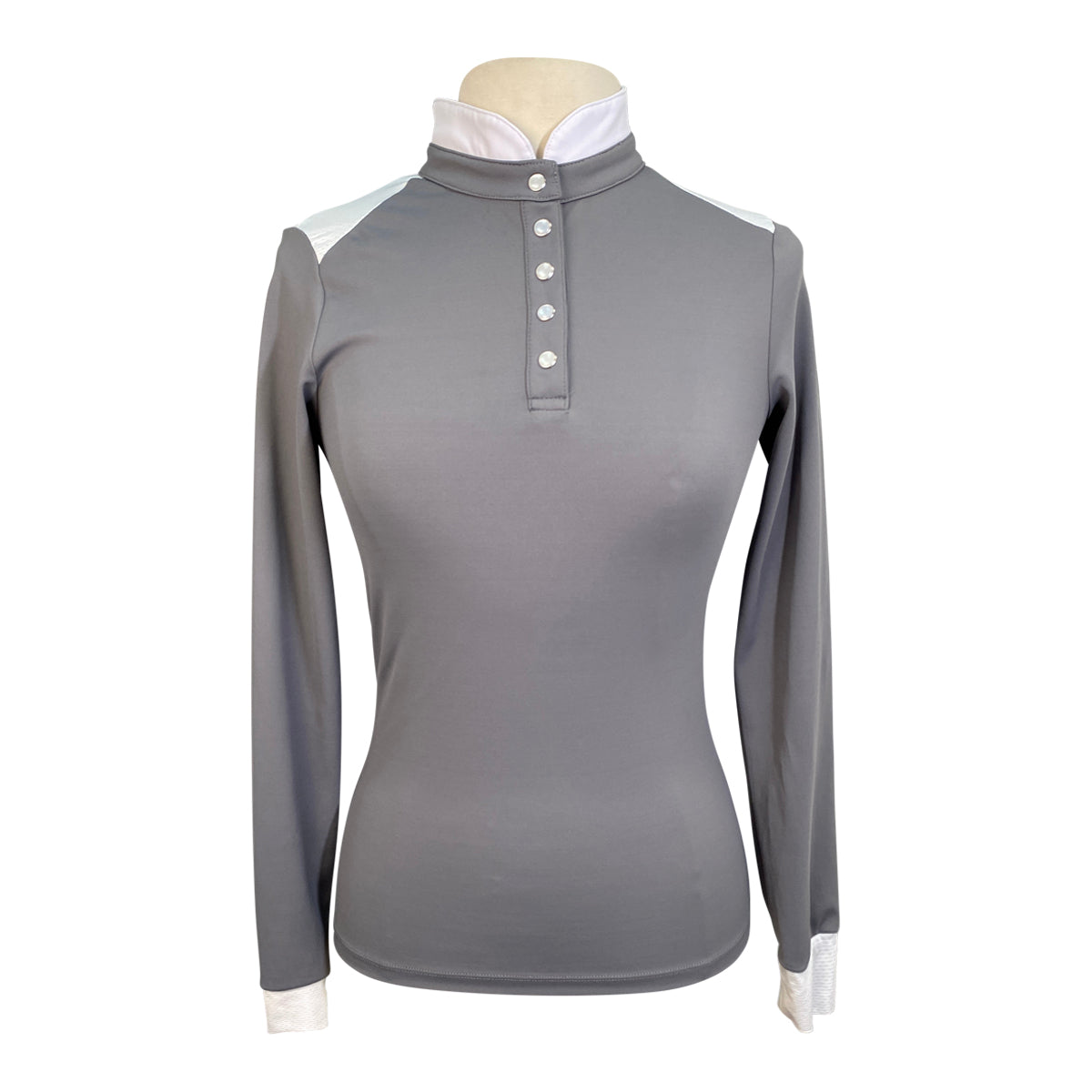 Free Ride Equestrian 'Devon' Long Sleeve Competition Top in Light Grey - Women's Medium